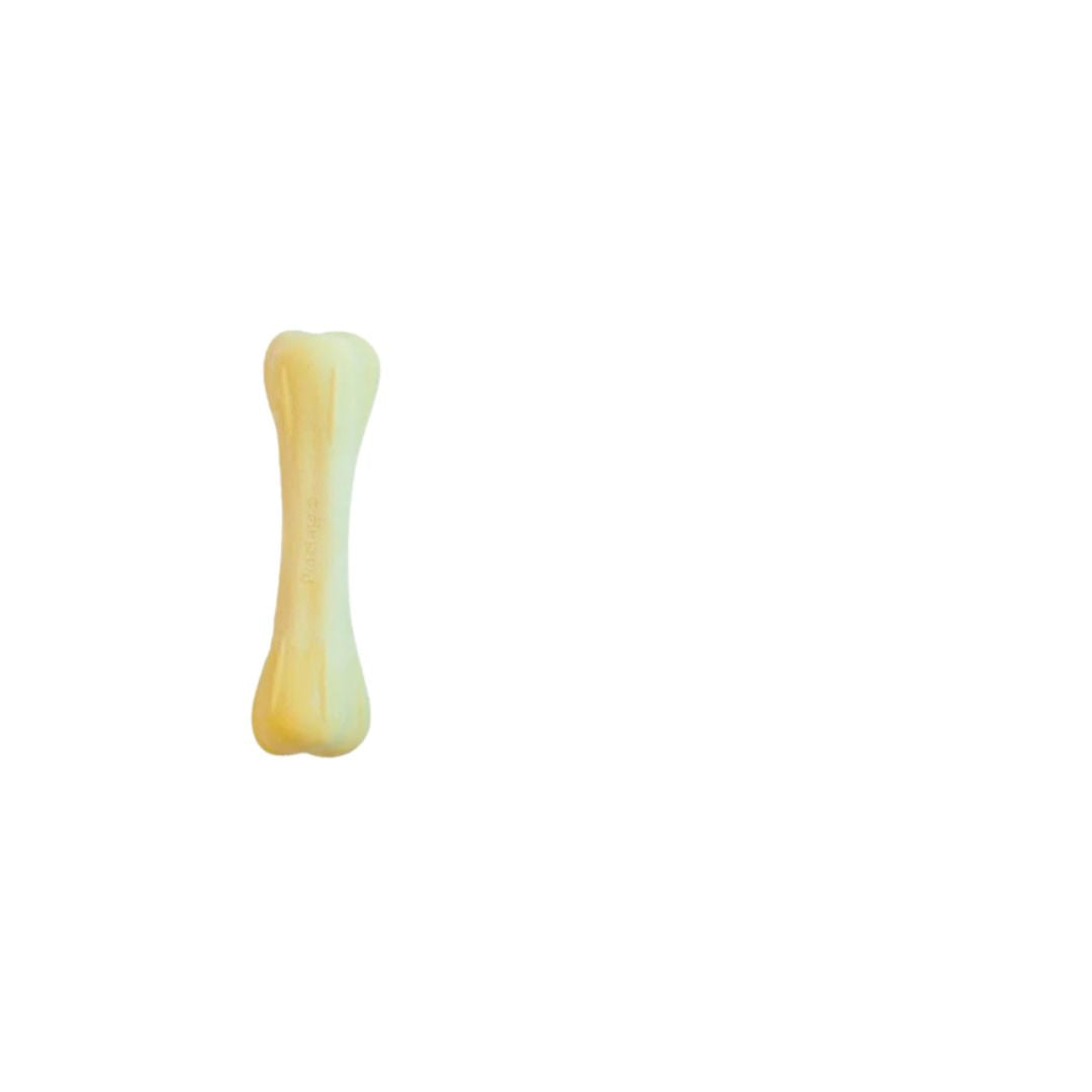 Petstages offers the Chick-a-Bone, a safe and healthy dog chew toy designed to provide a reliable alternative to real bones, which can pose dangers for aggressive chewers by splitting and splintering. Made from a blend of natural bone and synthetic materials, the Chick-a-Bone is free from lead and phthalates, ensuring a worry-free chewing experience. With a delicious natural chicken flavour derived from real chicken and bone meal, this chew toy is hard for dogs to resist, encouraging proper chewing habits even when playtime isn't possible. It features a sturdy construction that promotes long-lasting fun and is available in three different sizes to accommodate dogs of all breeds. The Chick-a-Bone's unique design not only stands up to tough chomping but also makes it easy for dogs to carry and chew, making it an ideal choice for proactive pet owners looking for a safe dental solution.