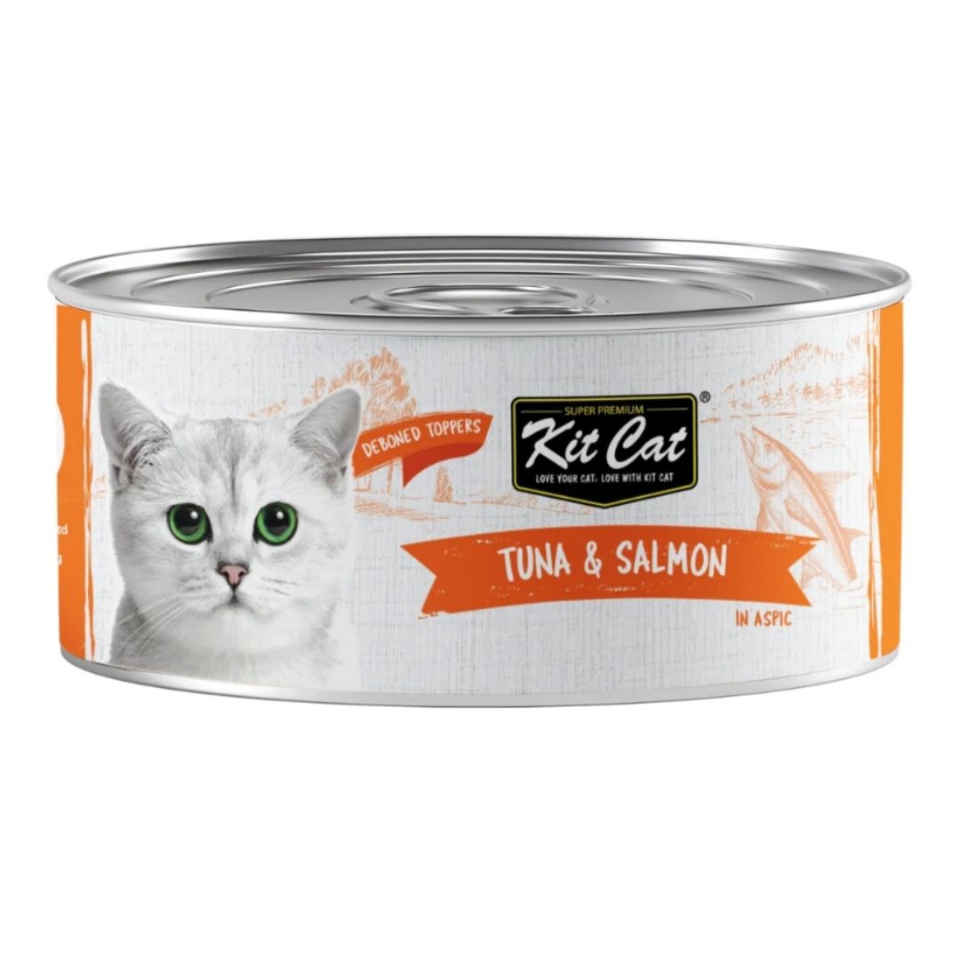 As obligate carnivores, our furry friends thrive on a meat-based diet. That's why Kit Cat Canned Food Toppers are crafted using high-quality, deboned chicken and/or tuna as the star ingredients. With over 70% protein on a dry matter basis, your cat will be nourished and satisfied, giving you the confidence that you're providing the best nutrition.