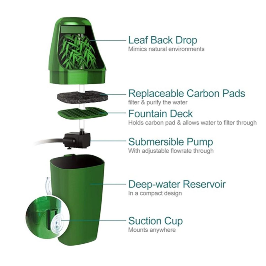 The Reptile Drinking Fountain delivers fresh, circulating water that simulates a natural stream, keeping your reptiles hydrated and comfortable. With its large 800ml reservoir, automatic filtration system, and energy-efficient pump, it's built for convenience and reliability. The quiet, soothing flow encourages reptiles and amphibians to drink naturally, while its sturdy, anti-tip design and suction cup base keep it securely in place.