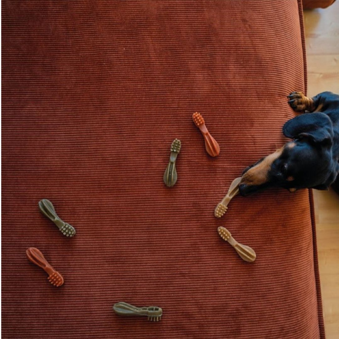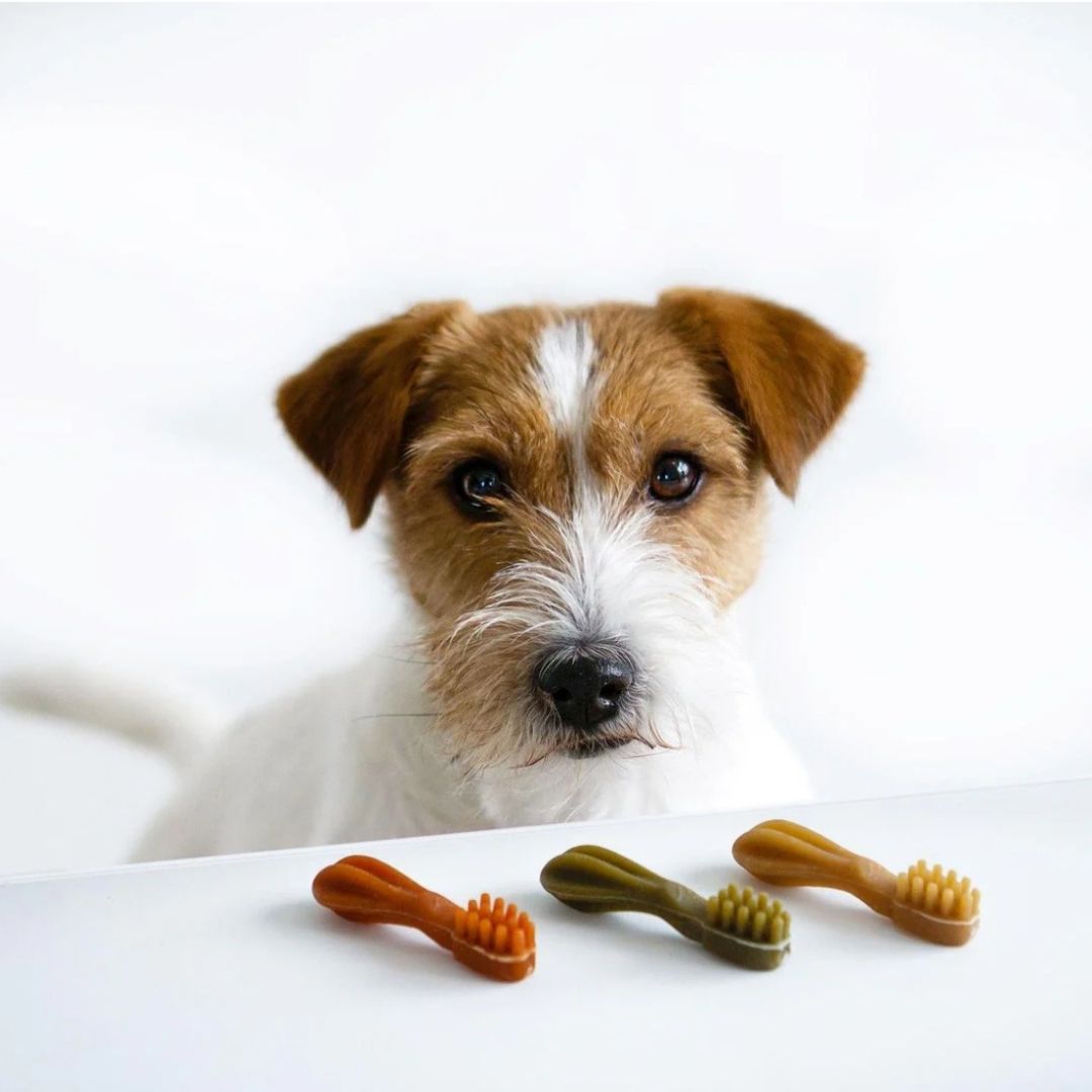 Transform your dog's dental health with our innovative dental treat! Specially designed with unique grooves and ridges, this treat works wonders in removing plaque and tartar like never before. Created for how dogs naturally grip and chew, it turns playtime into a delightful experience, resulting in fresher breath and cleaner teeth that will have your pup jumping for joy!